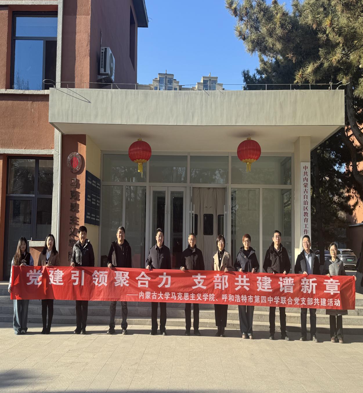 2026年3月11日下午,呼和浩特市第四中学党委郭宇钢校长、苗琪俊校长一行来到内蒙古大学马克思主义学院,与马克思主义学院党委共同开展党支部联合共建活动,双方围绕“大中小学思政课一体化建设”等主题进行座谈交流。马克思主义学院党委副书记王德、副院长刘琳琳、部分党委委员和教师代表参加了共建活动。